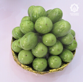 • Small size, shiny, green variegated oval fruits |