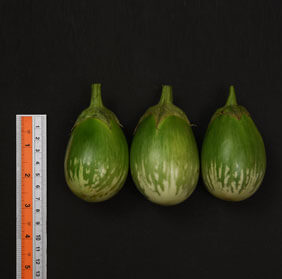 • Shiny green variegated oval fruits |